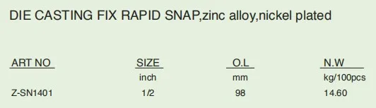 Die casting fix rapid snap,alloy nickel plated,ISO9001